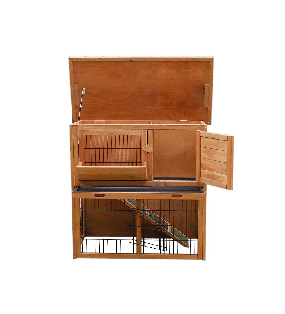 Hier wordt jouw konijn beschermt tegen de kou en kan jouw konijn lekker in het donker een dutje doen. Het bovenste gedeelte bevat bovendien een lade, zodat het hok gemakkelijk is schoon te maken.