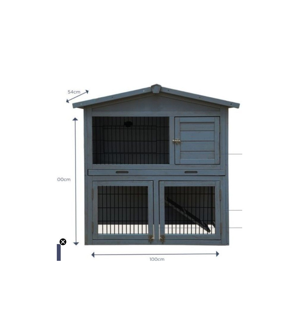 Topmast Konijnenhok hout 101 X 55 X 100 CM Grey washed Dit houten hok met twee verdiepingen heeft een open bodem om te grazen en een loopplank met glijders voor toegang tussen de twee verdiepingen. Het hok is voorzien van sterk zwart gecoat gaas en sloten op de deuren om de veiligheid van uw dieren te garanderen. Het is geschikt voor cavia's en andere kleine dieren. Al het hout is behandeld met een waterafstotend middel en het dak is voorzien van slijtvast asfalt. Dit prachtige konijnenhok kan eenvoudig worden gecombineerd met onze afgesloten ren om uw kleine dier een grotere, beschutte buitenruimte te bieden. Let op : Voor dit model is een bijpassende afdekhoes (PET/COVER.03) verkrijgbaar. Dit hok kan worden gekoppeld aan de PET/RUN.02 ren voor een nog grotere speelruimte (apart verkrijgbaar). Functies: Waterdichtingsbehandeling op hout Zwart gecoat gaas zorgt ervoor dat het vosbestendig is Oprit met glijders voor gemakkelijke toegang tussen de twee gebieden Drie openingen op het hok voor gemakkelijke toegang en reiniging Open bodem voor vrij grazen Slijtvast asfalt dak ter bescherming tegen hitte en regen Het hellende dak maakt waterafvoer mogelijk Grendelsloten op de deuren voor extra veiligheid Materialen zijn 100% veilig voor kleine dieren Behandeld met een ongediertebestendige behandeling Materialen: Zwart gecoat gaas Asfaltvilt FSC-sparrenhout Sloten van roestvrij staal Afmetingen: H100 x D54 x B101cm Onderste winkel: H39,5 x D44 x L76,4 cm Bovenste winkel: H30,8 x D44 x L77,2 cm Onderste deuren: H39,5 x B38,2 cm Bovendeur: H30,8 x B31,3 cm Gewichten: 24 kg Kleuren: Natuurlijk hout Grijs Zelfmontage vereist. Volledige instructies worden meegeleverd.