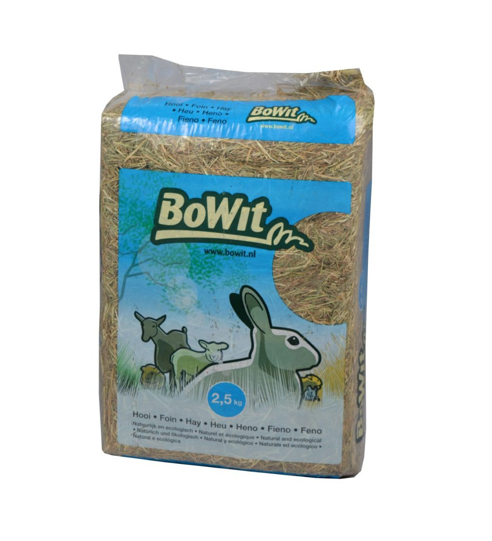 Een milieuvriendelijk geproduceerd stofvrij natuurproduct. Door het hoge gehalte aan ruwe vezels zorgt BoWit hooi voor een goede spijsvertering bij knaagdieren. Het is daarom een belangrijk onderdeel van de dagelijkse voeding van uw dier(en).