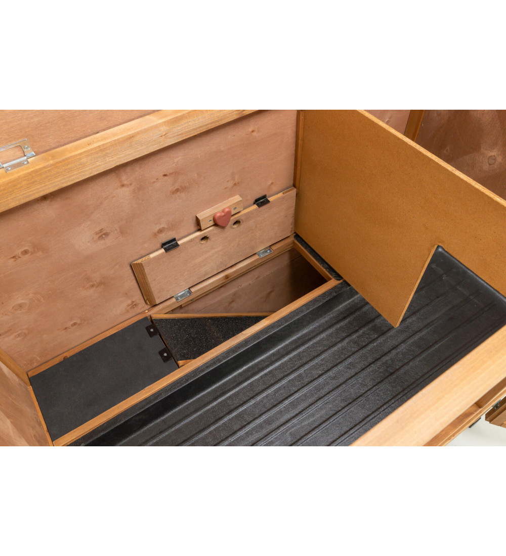 - buitenwanden, onderste bak en dak met geïsoleerd met tempex
