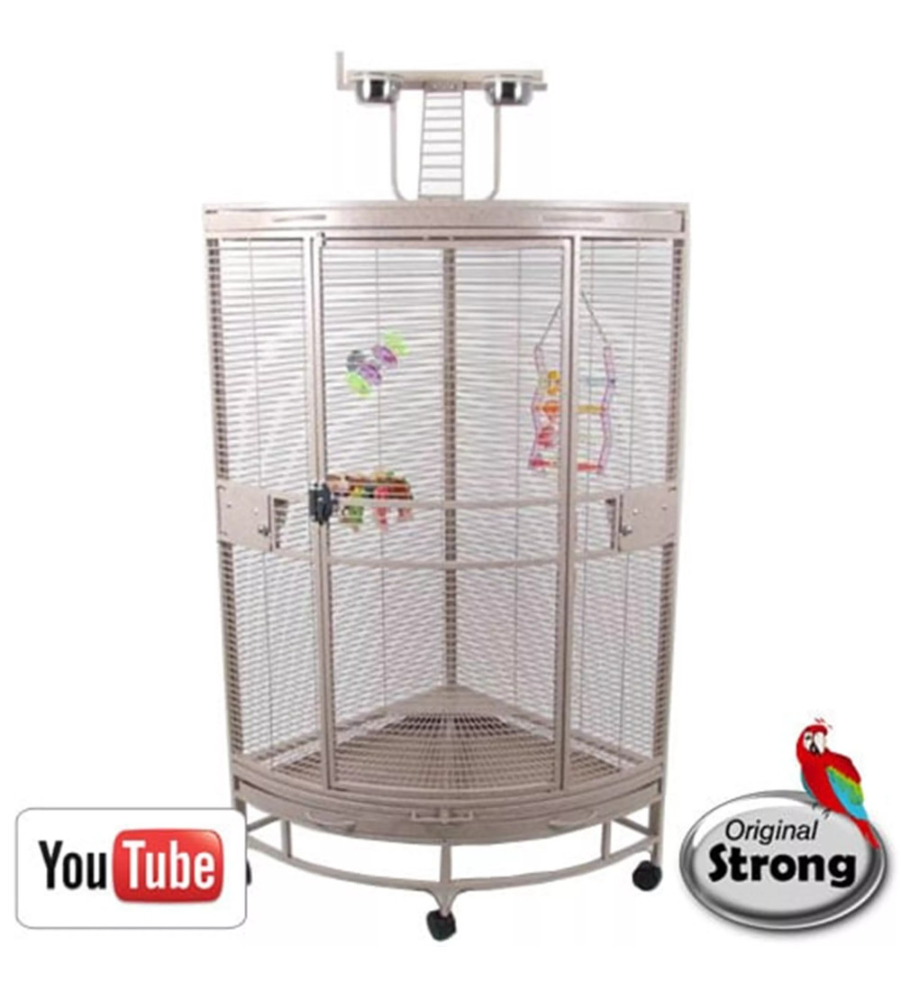 Deze kooi is bovendien ideaal voor gevoelige of snel gestreste vogels: door de hoekopstelling ontvangt uw vogel alleen prikkels van de voorzijde, waardoor hij zich veiliger en meer ontspannen voelt.