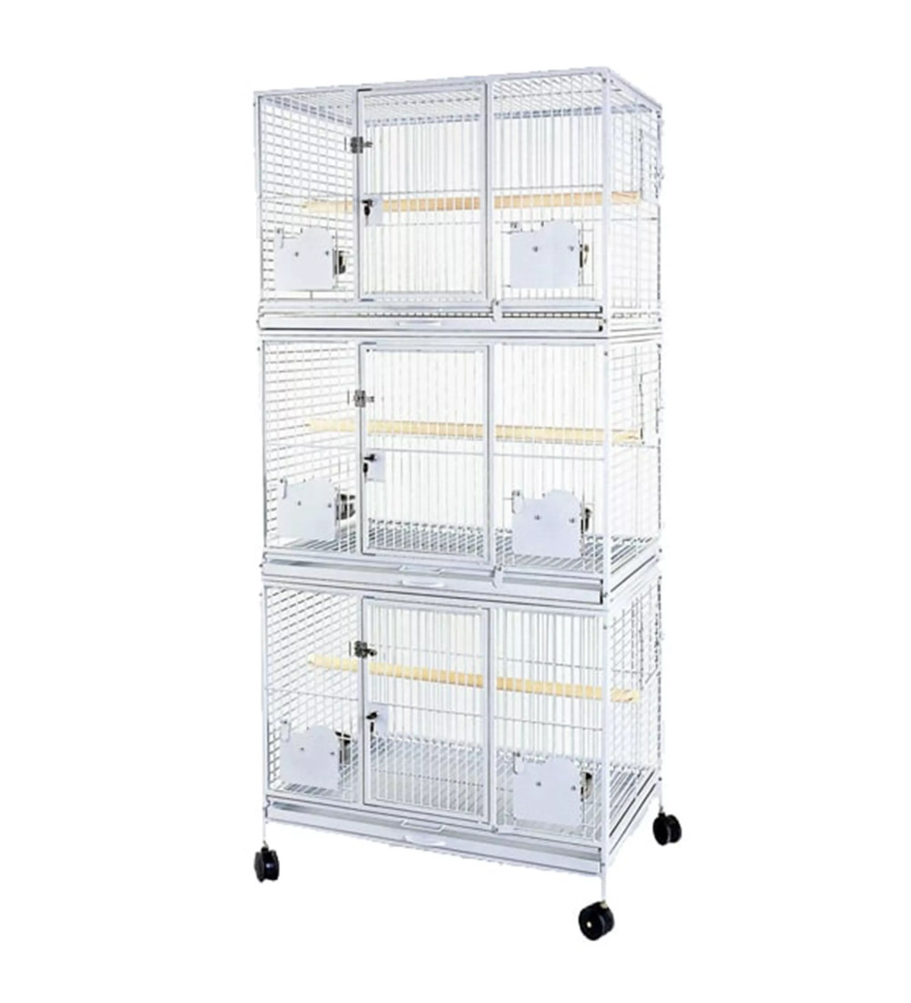 De Papegaaienkooi Myra is van uitstekende kwaliteit en bijzonder geschikt voor huiskamers met beperkte ruimte. Dankzij de drie verdiepingen kunt u meerdere papegaaien afzonderlijk huisvesten, elk met hun eigen leefruimte. Elke sectie is gescheiden door een uitneembaar rooster met metalen opvanglade. Deze kooi is bovendien zeer populair als broedkooi.